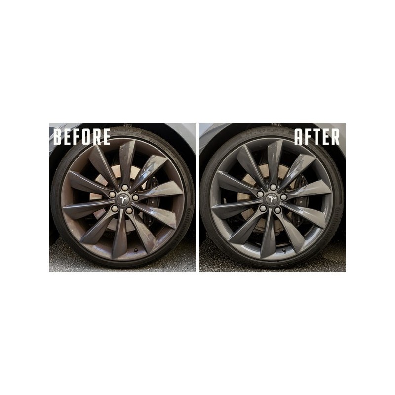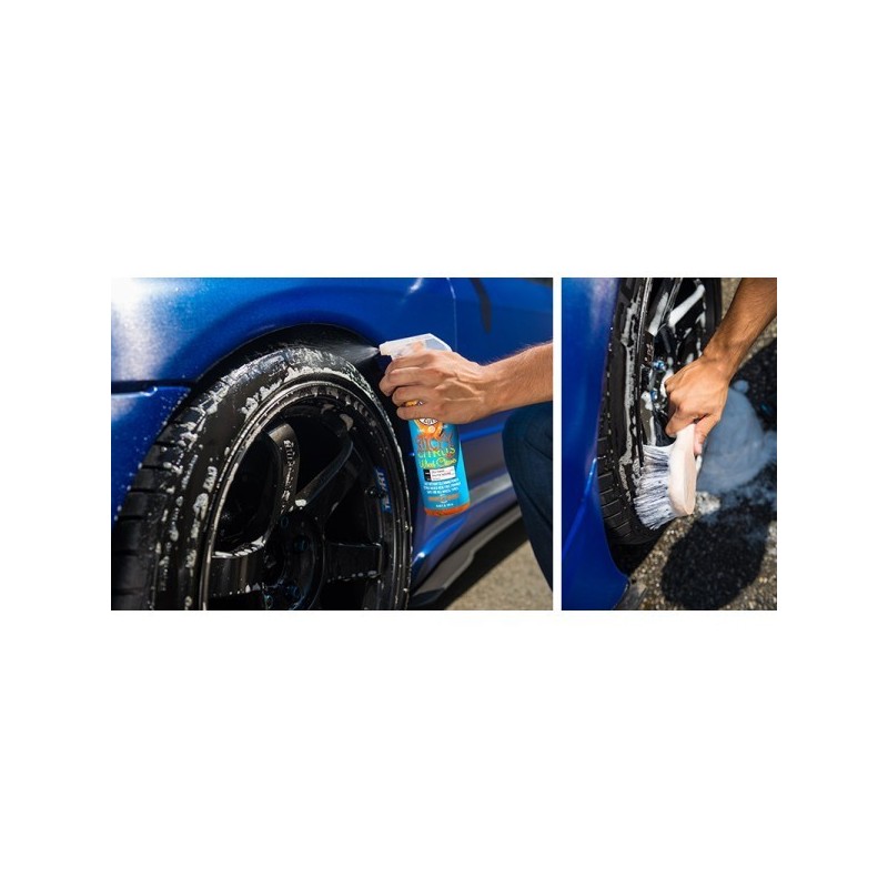 Aplica o Citrus Gel e passa com uma escova para facilmente levantar, separar e remover o ferodo mais resistente em apenas alguns segundos. Este produto age rapidamente contra o ferodo mas é seguro para as jantes e pneus.