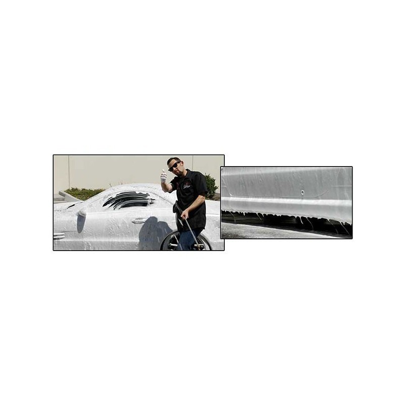O Honeydew Snow Foam é o shampoo ideal para utilizar com uma foam gun pois cria uma espessa e duradoura espuma que perdura durante toda a lavagem, permitindo amolecer a sujidade à medida que fica na superfície, tornando a lavagem muito mais fácil e eficaz. Independentemente da cor do teu carro, ficará branco de tanta espuma. Mas sossega... apenas durante a lavagem. Após a lavagem vai ficar simplesmente fantástico. Deixa-te render pela capacidade de lubrificação e viscosidade deste shampoo em especial a usar uma foam gun.